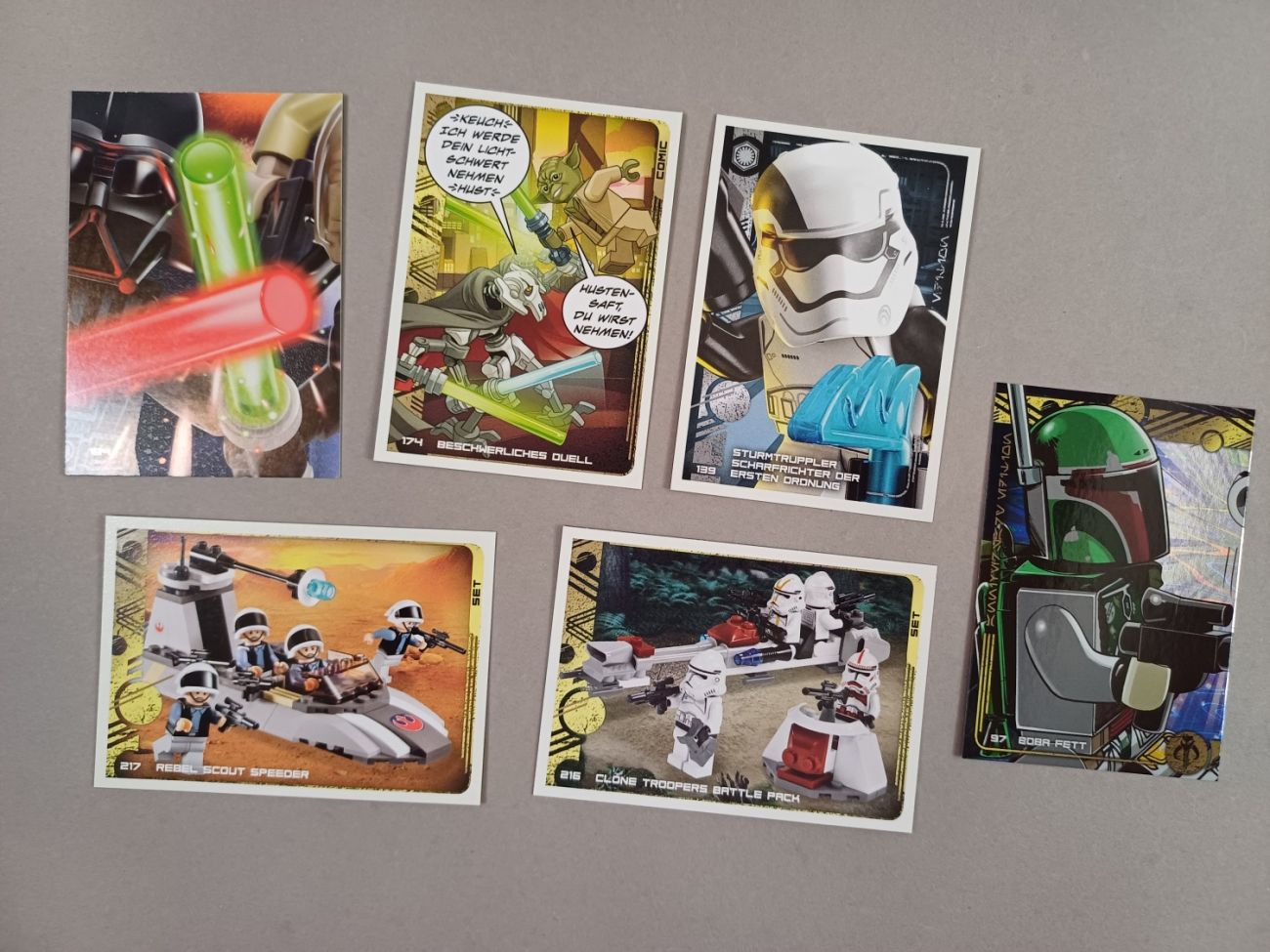 Neben dem Heft mit Comics, Rätseln und Werbung gibt es noch einen Booster mit sechs Sammelkarten von der neuen LEGO Star Wars Trading Card Collection (die Jubiläums Edition). Dazu gibt es noch die Goldkarte LE4 mit General Grievous. Zufälligerweise ist er einer meiner Lieblingsfiguren aus Star Wars, weshalb mir seine Karte hier besonders gefällt. Wahrscheinlich wird es ihn aber nie in einem Magazin geben.