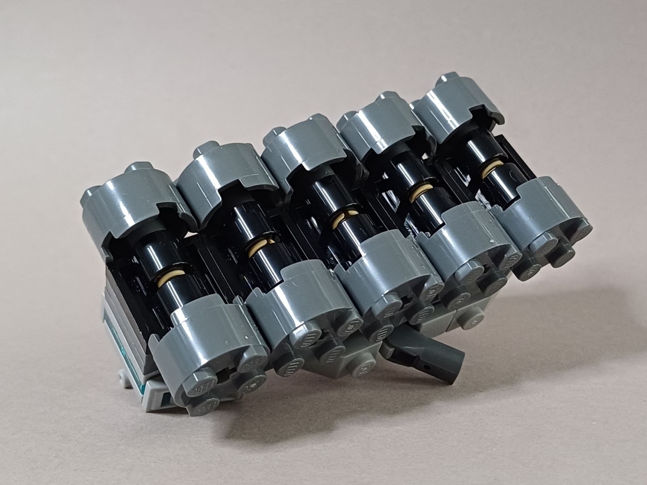 Aus den 65 LEGO Teilen und mit einer Bauanleitung auf zwei Seiten bauen wir dann den Juggernaut. Die Bauweise ist recht simpel, da wir unter einer 10 Noppen langen Platte die Räder befestigen und obendrauf die restlichen Steine verbauen. Neben den zehn großen Rädern, welche runde 2 × 2 Steine sind, haben wir hier viele weitere Platten, Steine und Fliesen.