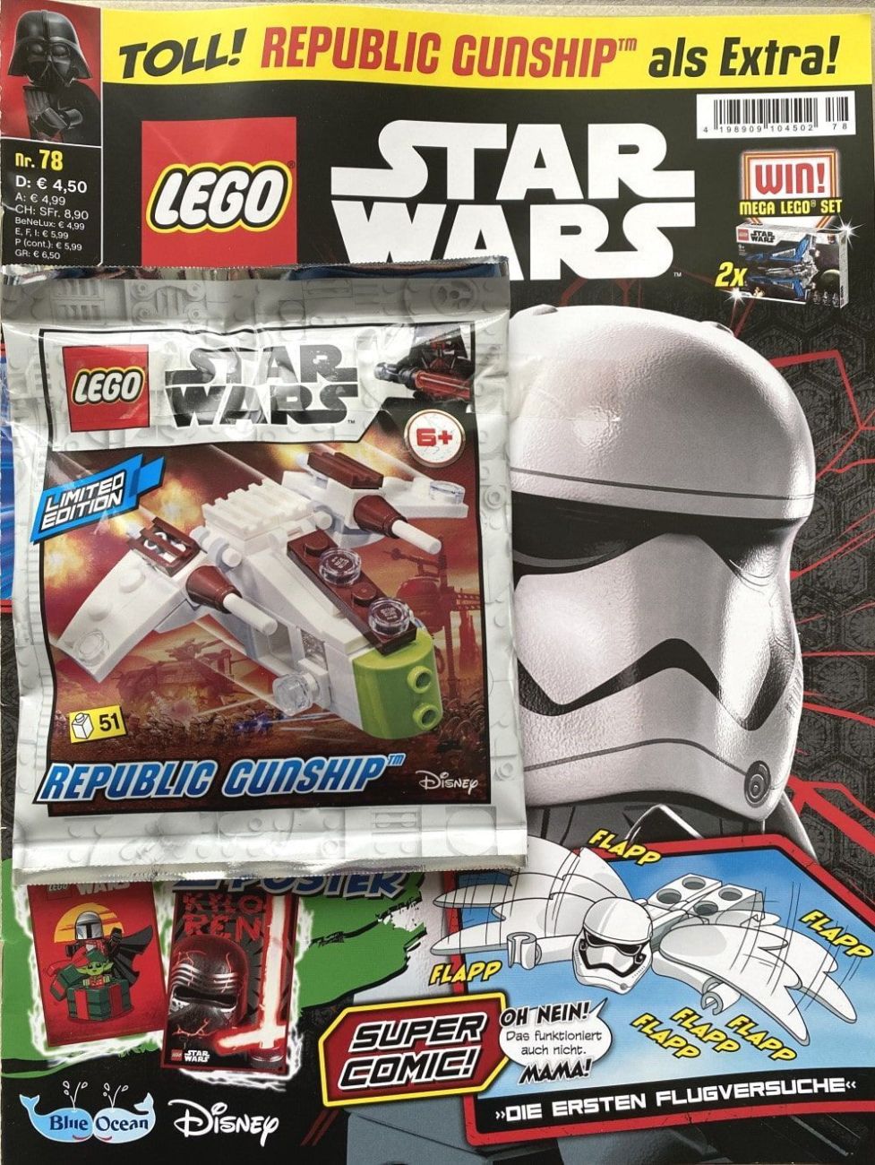 Nach einer kleinen Pause möchte ich euch wieder das aktuelle LEGO Star Wars Magazin vorstellen. Die Ausgabe #78 lag vor einigen Tagen bei mir im Briefkasten. Wie ihr sicher schon gesehen habt, sind die Mini-Sets seit Ausgabe #75 etwas größer geworden. Dafür ist auch der Preis auf 4,50 Euro gestiegen, die 4,99 Euro waren damit nur eine einmalige Sache für Ausgabe #74. Mit dem aktuell letzten Heft für 2021 bekommt ihr ein Republic Gunship, Sammelkarten liegen dieses Mal keine bei. In der Heftmitte findet ihr wie immer ein A3-Wendeposter, diesmal mit einem weihnachtlichen Mando-Motiv. Lasst euch überraschen!