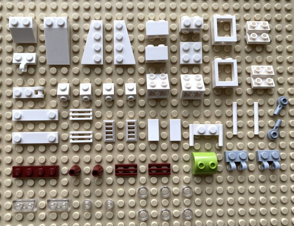 Das Gunship besteht aus 51 Teilen, die ich euch hier auf einer Platte angerichtet habe. Wie gewohnt könnt ihr die Teile sicher auch in anderen Bauwerken unterbringen, wenn ihr kein Bedarf an einem Mini-Gunship habt (oder vielleicht schon das große im Regal steht …). Die Farben sind gut gewählt und passen genau zum großen Vorbild, wie ihr gleich sehen werdet.