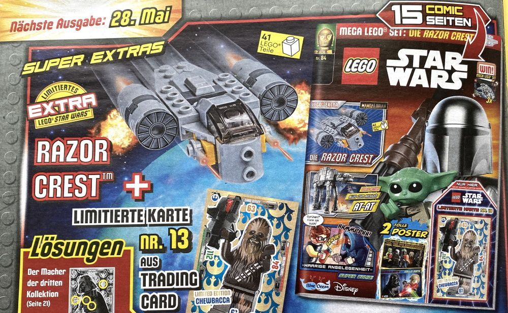 In der nächsten Ausgabe des LEGO Star Wars Magazin stattet die Razor Crest euch einen Besuch ab. Auf den ersten Blick ist sie ganz gut gelungen, genaueres schauen wir uns dann ab dem 28. Mai 2022 an. Denn dann liegt das neue Magazin beim Händler.