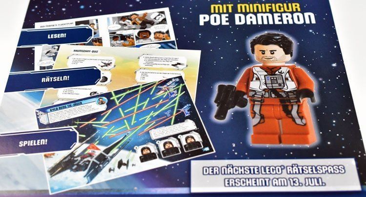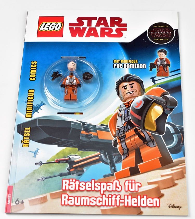 Gestern Abend habe ich auf dem Nachhauseweg von der Arbeit bei meinen Kiosk ein neues LEGO Heft aus dem Ameet Verlag entdeckt: LEGO Star Wars Rätselspaß für Raumschiffhelden für 4,99 Euro, mit dabei eine LEGO Minifigur von Poe Dameron inklusive einer Blaster-Pistole.