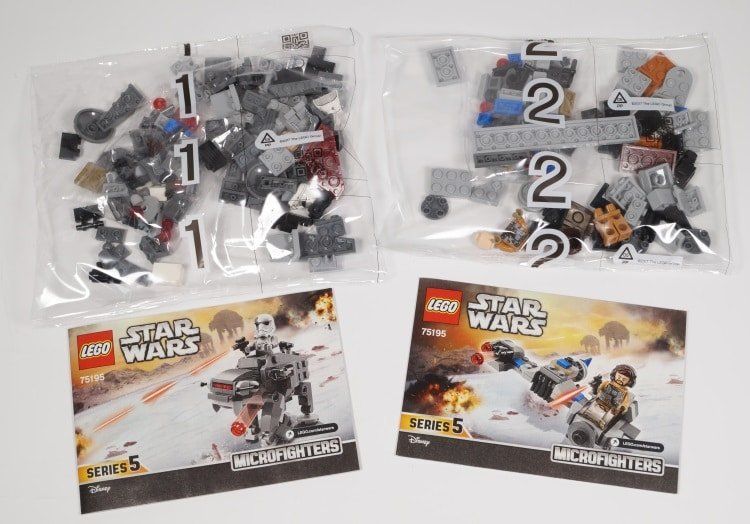 Wenn ihr die Packung öffnet, fallen euch zwei Beutel und zwei Bauanleitungen auf den Tisch. Die zwei Sets sind also auch im Karton getrennt.