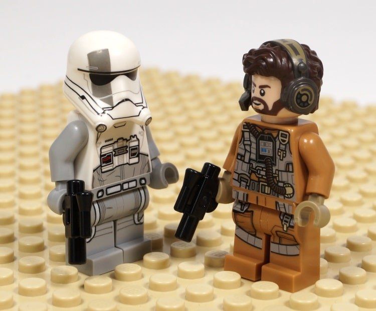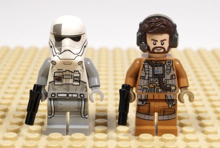 Der Resistance Pilot hingegen nutzt Torso und Beine der Bomberpiloten aus dem Set „Resistance Bomber“ (75188). Seine Frisur mit dem Kopfhörer hat er sich aus dem Set „Defense of Crait“ (75202) geliehen, welches auch Vorbild für diesen Microfighter gewesen sein wird. Beide Figuren sind also brandneu und erst in der aktuellen Star Wars Serie erschienen.