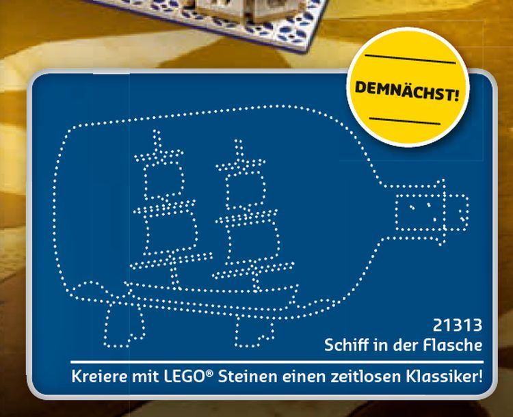 Neben dem Jubiläumsset 60 Jahre LEGO Stein (40290), welches es ab dem 28. Januar ab einem Mindesteinkauf in Höhe von 125 Euro gratis dazu gibt, findet sich im Store Flyer auch die offizielle Release-Ankündigung zum LEGO Ideas Schiff in der Flasche (21313) Set.