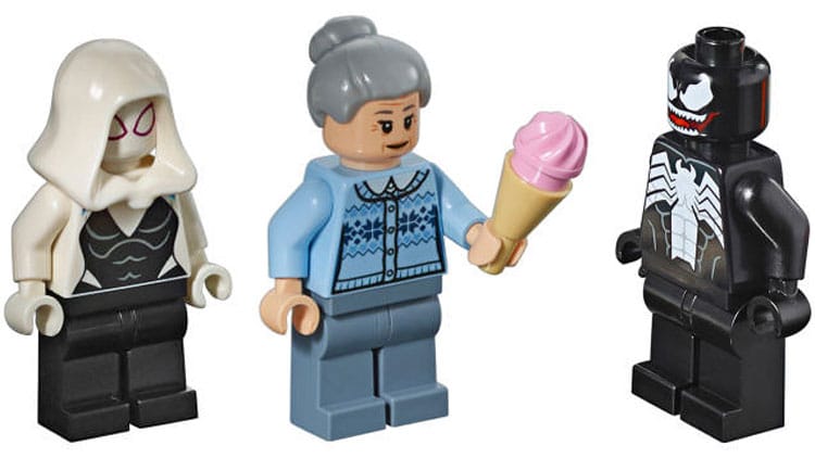 Dafür finde ich Venom Klasse und mal sehen wie sich die neue Spider-Man Figur von der alten unterscheidet. Warum dieses Set allerdings einen Spider-Mech oder Tante May mit einem Eis braucht, verstehe ich nicht ganz?