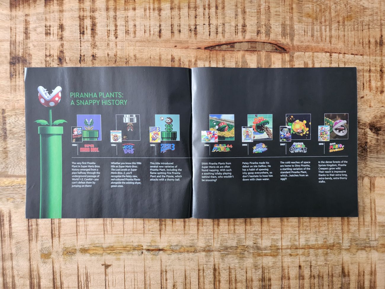 Die Bauanleitung hat einige schöne Infos über die Piranha-Pflanze und deren Entstehung bzw. Evolution in der Super-Mario Videospielreihe parat. Auch ein kurzes Wort vom Designer findet seinen Platz, hierbei handelt es sich übrigens um denselben Designer (Carl Merriam), welcher auch bereits für den mächtigen Bowser verantwortlich zeichnet.