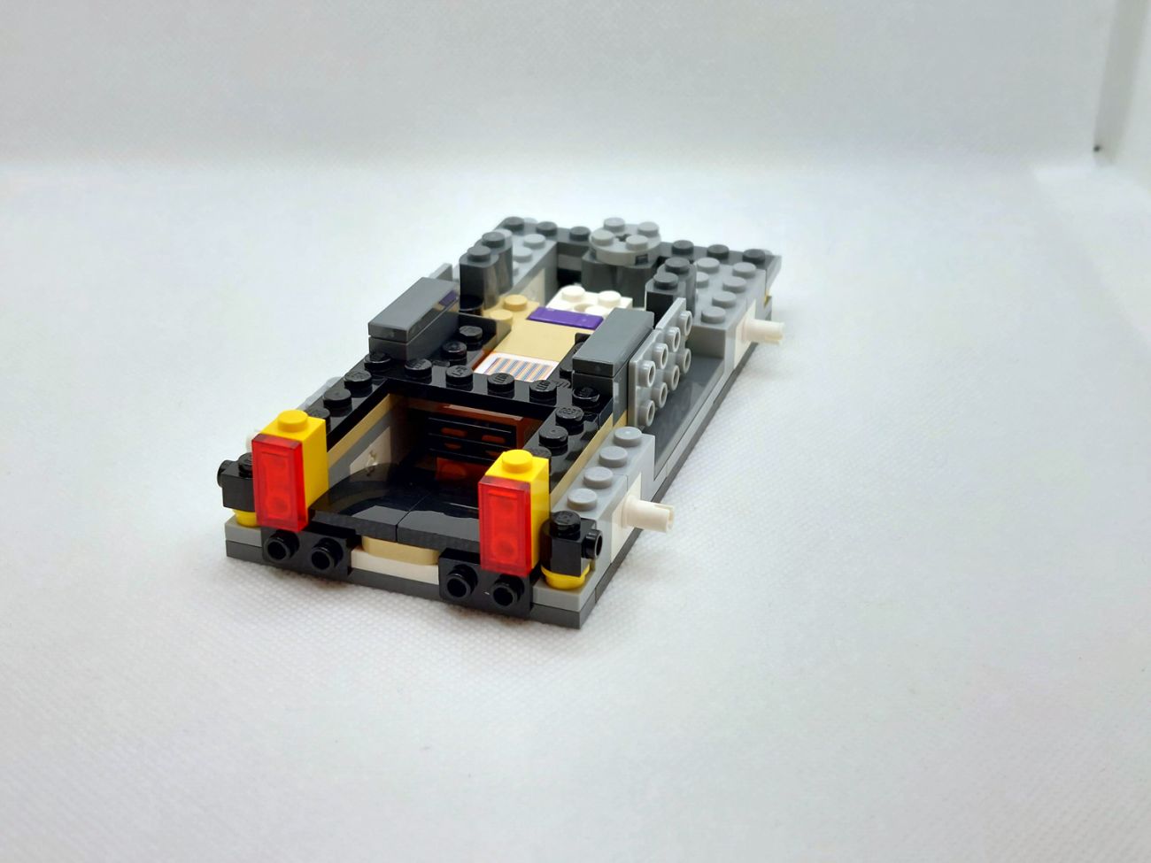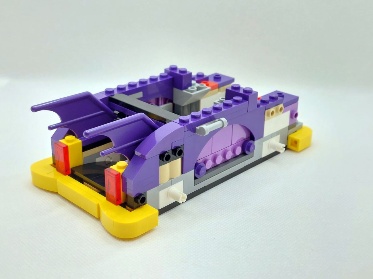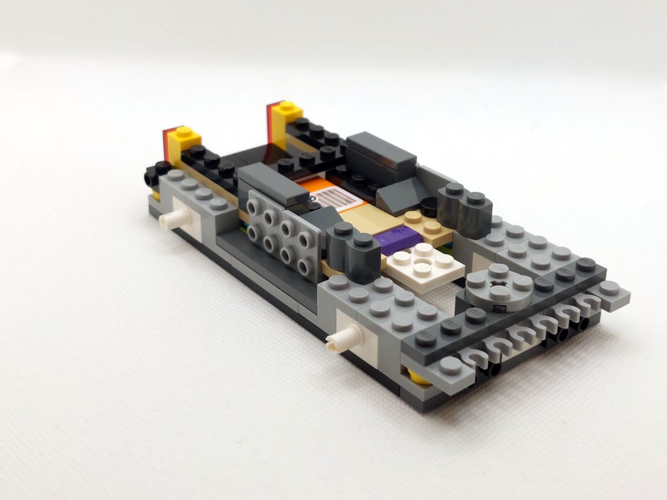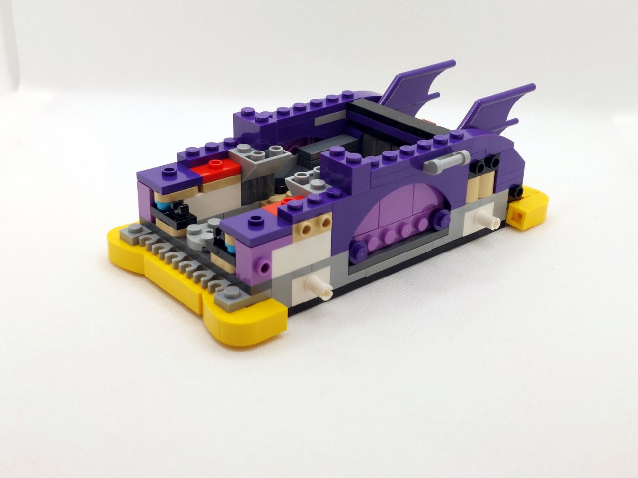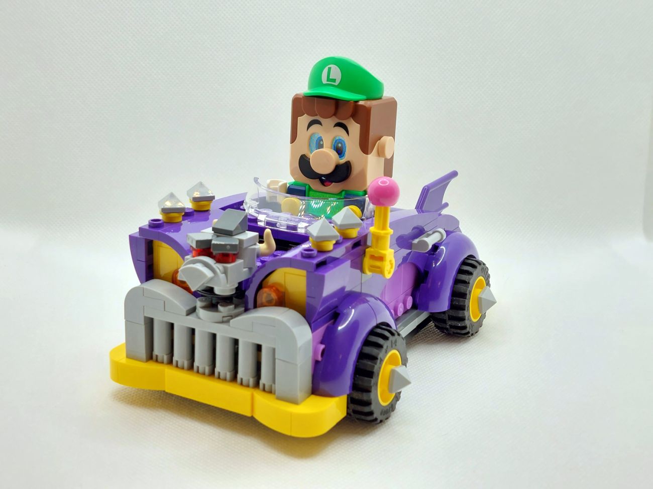 Durch den Hebel an der Seite kann der Minibowserkopf an der Motorhaube auf und ab bewegt werden; öffnet man den Kofferraum, fallen durch die Bewegung des Hebels zusätzlich zwei kleine Bomben heraus, denen man im Spiel ausweichen muss. Besonders gefallen mir die grauen Kerzen, die vorne als Kühlergrill verwendet werden, und die curved slopes für Bowsers Augenbrauen.