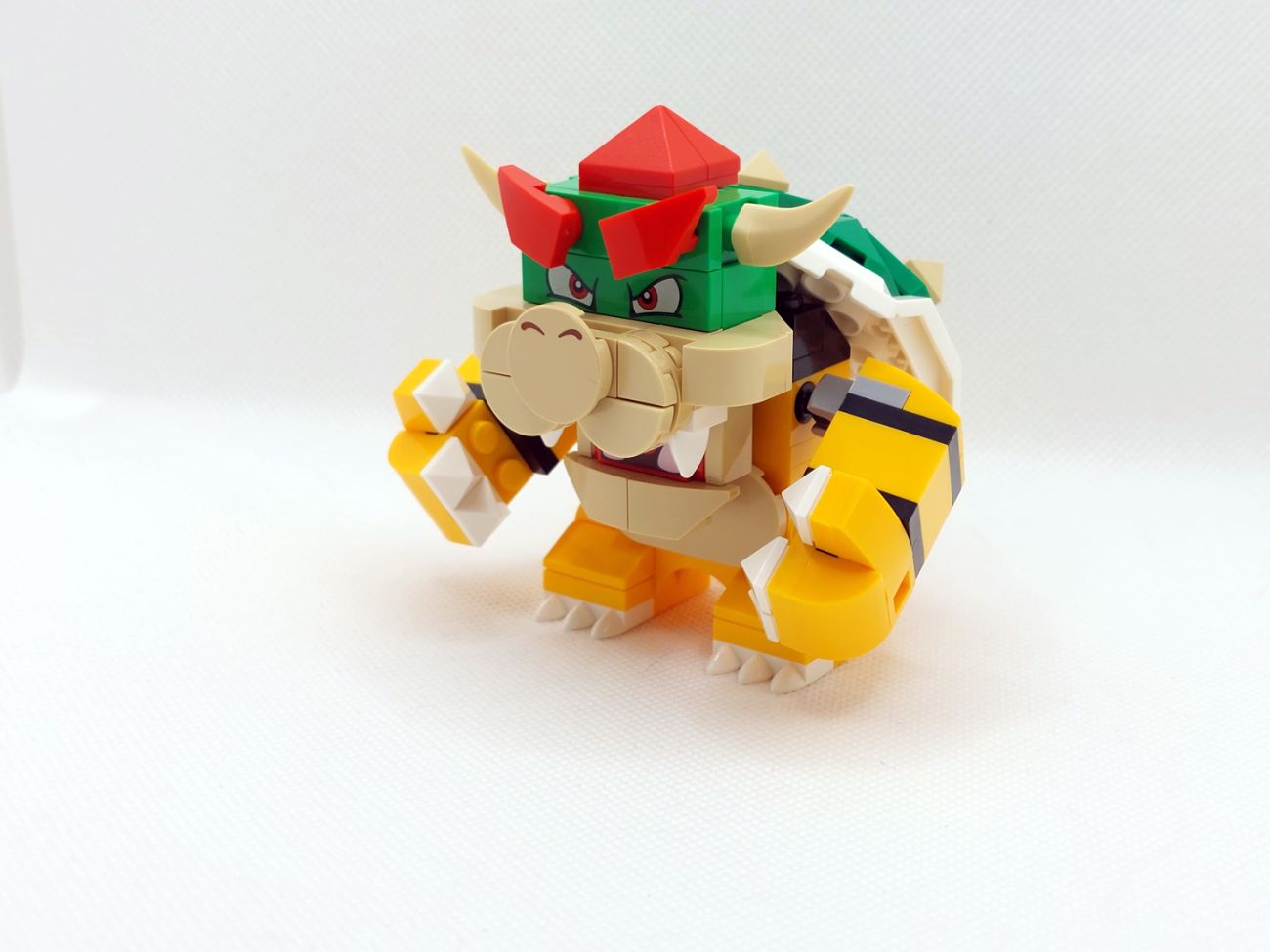 Das LEGO Super Mario 71431 Set ist ein weiteres Set, das auf Super Mario 3D World basiert, einem meiner persönlichen Lieblingsspiele der Mario-Reihe. Das Set passt sehr gut zum Spiel und sieht dem Vorbild sehr ähnlich, Fans des Spiels dürfte das Modell auf jeden Fall gefallen. Ein weitere Pluspunkt ist die Bowserfigur, die es bisher nur in teureren Sets gab und nun in verbesserter Variante auch günstiger zu bekommen ist. Die Figur hat bewegliche Arme und einen beweglichen Schwanz, dafür statische Beine. Der Panzer ist ein großes Formteil, auf das Slopes und mit Hinges angewinkelte Jumperplates gesetzt werden. Der Panzer wird dann an angewinkelten Schilden befestigt und schließt so die Rückseite von Bowser ab.