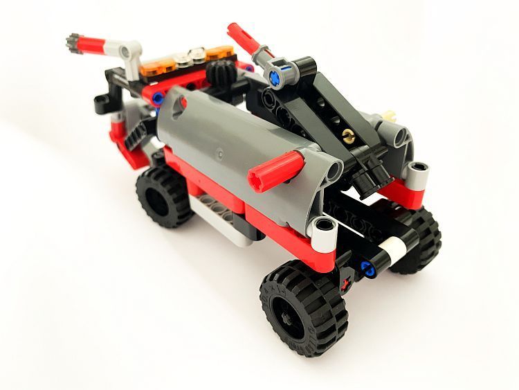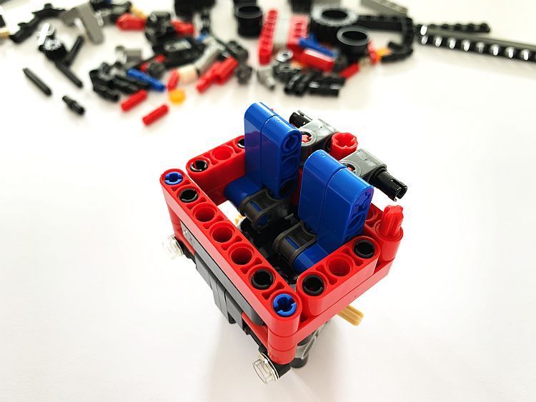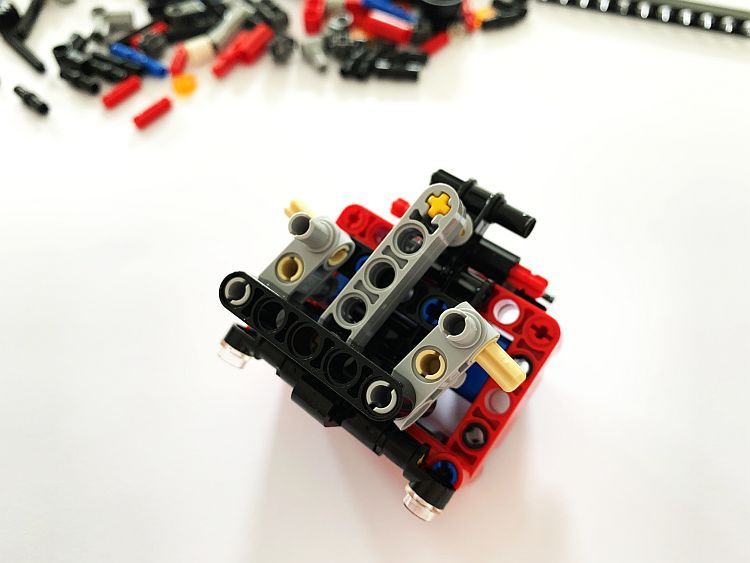 Klein aber fein kommt sie daher mit ihren Maßen von 15,5 cm in der Breite, 14 cm in der Höhe und 7 cm in der Tiefe. Das Design entspricht dem typischen Technic-Layout.