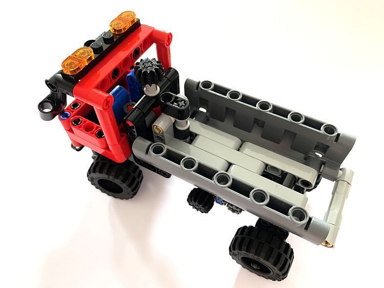 Der Blick von Oben zeigt auch noch die schöne, fast geschlossene Ladefläche, wo so manches 250 Euro Technic-Jubiläumsset neidisch sein dürfte.