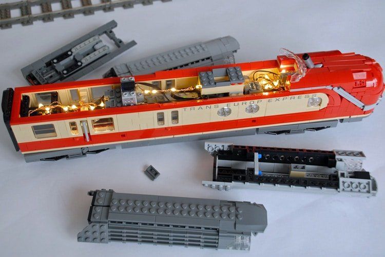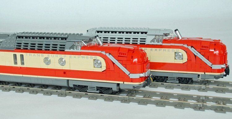 Der „Trans Europ Express“ Schriftzug ist von http://www.modellbahndecals.de/, die Fliese an der Nase mit dem TEE-Logo ist von http://www.steindrucker.com/ … auch auf meiner eigenen Webseite: https://www.holgermatthes.de/bricks/de/vt-11-5-tee.php