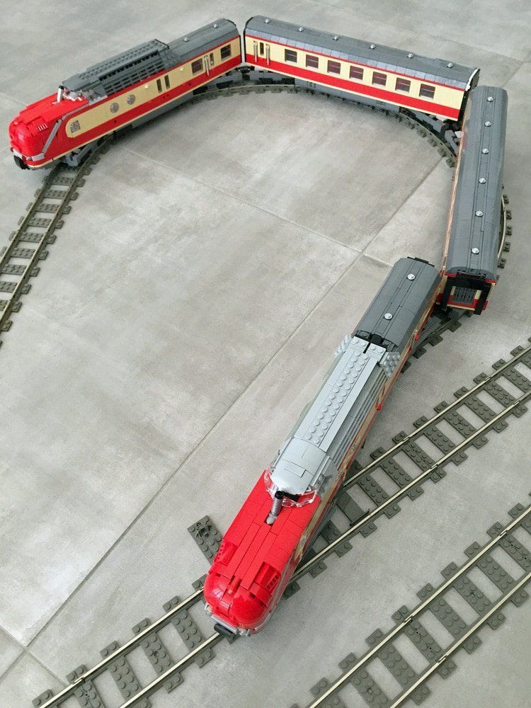 Die Triebwagen haben Power Functions, zwei Motoren im vorderen Triebkopf und einen im hinteren.