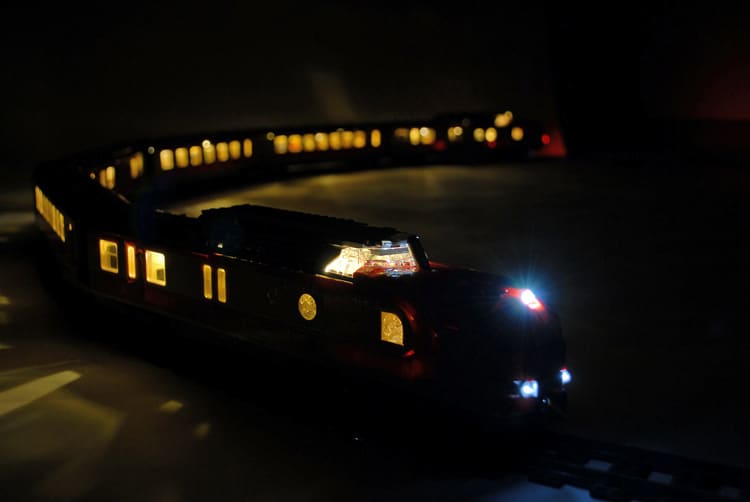Der ganze Zug ist beleuchtet, teilweise mit Original LEGO Teilen, teilweise mit Custom Parts.