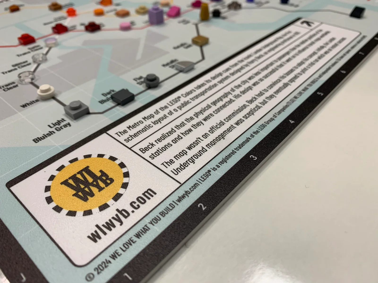 Die Karte ist von einer London Tube Map aus dem Jahre 1931 inspiriert, dabei wurden bereits damals einzelne Strecken durch Farben gekennzeichnet, damit Reisende sich leichter zurecht finden konnten. Diesen Weg der Farbschemata folgt der Hersteller auch bei seiner Variante der LEGO-Elemente. Die ersten 2000 Einheiten der Karte werden übrigens nummeriert ausgeliefert.