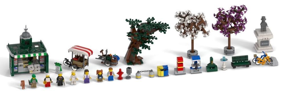 Die Modular Buildings zählen eindeutig zu den besten Sets, die LEGO je herausgebracht hat. Alle Häuser direkt nebeneinander stehen zu haben ergibt ein überragendes Stadtpanorama, das jeden in Staunen versetzen würde. Und nun stellt euch das Modular Expansion Pack mit seinem hübschen Park und dem Kiosk dazwischen vor – es würde eure Stadt auf ein gänzlich neues Level heben. Und dazu brauchte es nur eine frische Idee.