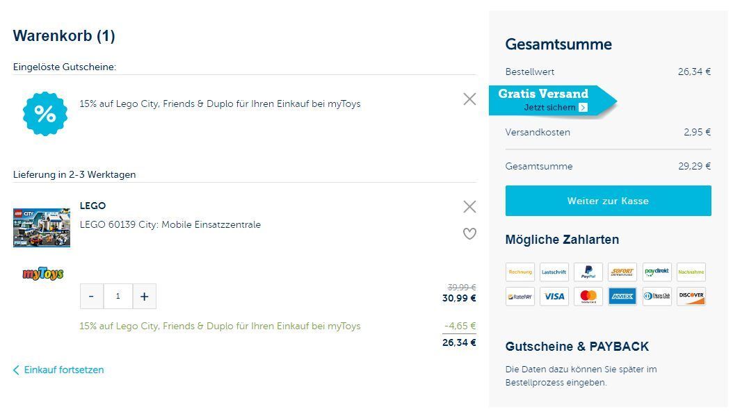 Pro Einkauf bei myToys fallen moderate 2,95 Euro an Versandkosten an, innerhalb Deutschlands erfolgt die Lieferung mit Hermes.