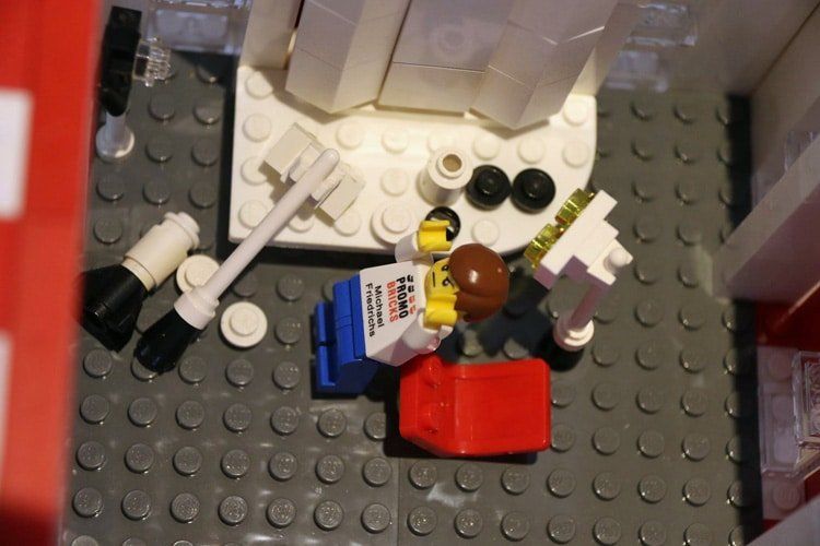 Die Idee dazu entstand an einem verregneten Sonntag im Keller. Ich las mal wieder einen interessanten Bericht auf PROMOBRICKS. Zeitgleich hatte ich mir meine Stadt angeschaut und mir gedacht, „ach komm ein Hochhaus geht noch“. Aber was sollte er darstellen? Zwei Octan Tower habe ich ja schon. Eine Bank ist auch vorhanden. Also kam mir die Idee, den PROMOBRICKS Tower zu bauen. Da die Jungs mich immer schnell und ausführlich mit Informationen versorgen, brauchen sie dafür natürlich auch die passenden Räumlichkeiten. Und auch an unseren Freund Michael wurde gedacht!! Er hat ein ganzes Stockwerk für sich allein und seine Livebuilds. Er wurde auch zum besten Moment fotografiert, wie er zum wiederholten Male das Saturn V Modell vom Tisch wirft. Nur ein paar Fakten zum Turm selbst: Er wurde auf einer 32×32 Platte gebaut und misst genau ein Meter Höhe. Er ist komplett modular gebaut und man könnte ihn jederzeit erhöhen. Es wurden circa 2.900 Steine verbaut.