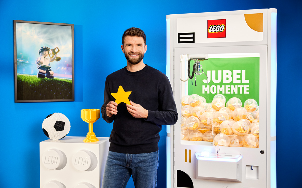 Auch LEGO Deutschland rührt kurz vor Beginn des Sport-Highlights kräftig die Werbetrommel und schickt unter anderem Markenbotschafter Thomas Müller auf den Platz. Er macht den Startschuss für die neue LEGO Arena Mission und sammelt damit die ersten 50.000 Bausteine für ein riesiges Fußballstadtion aus über eine Million LEGO Steinen, das im Rahmen eines Live-Events am 14. Juni in München präsentiert wird.