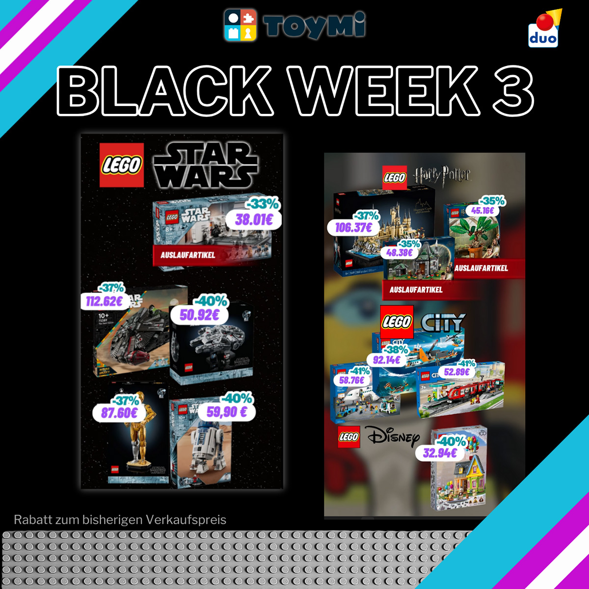 Im Online-Shop von Toymi sind die LEGO Black Weeks 2025 gestartet: Vom 15. November bis zum 01. Dezember gibt es zahlreiche LEGO Sets aus verschiedenen Themenreihen mit bis zu 41 Prozent Rabatt gegenüber dem bisherigen Verkaufspreis. Ab 50 Euro Einkauf gibt es zudem ein Polybag als Gratis-Zugabe dazu. Ab einem Einkaufswert von 99 Euro entfallen darüber hinaus die Versandkosten.