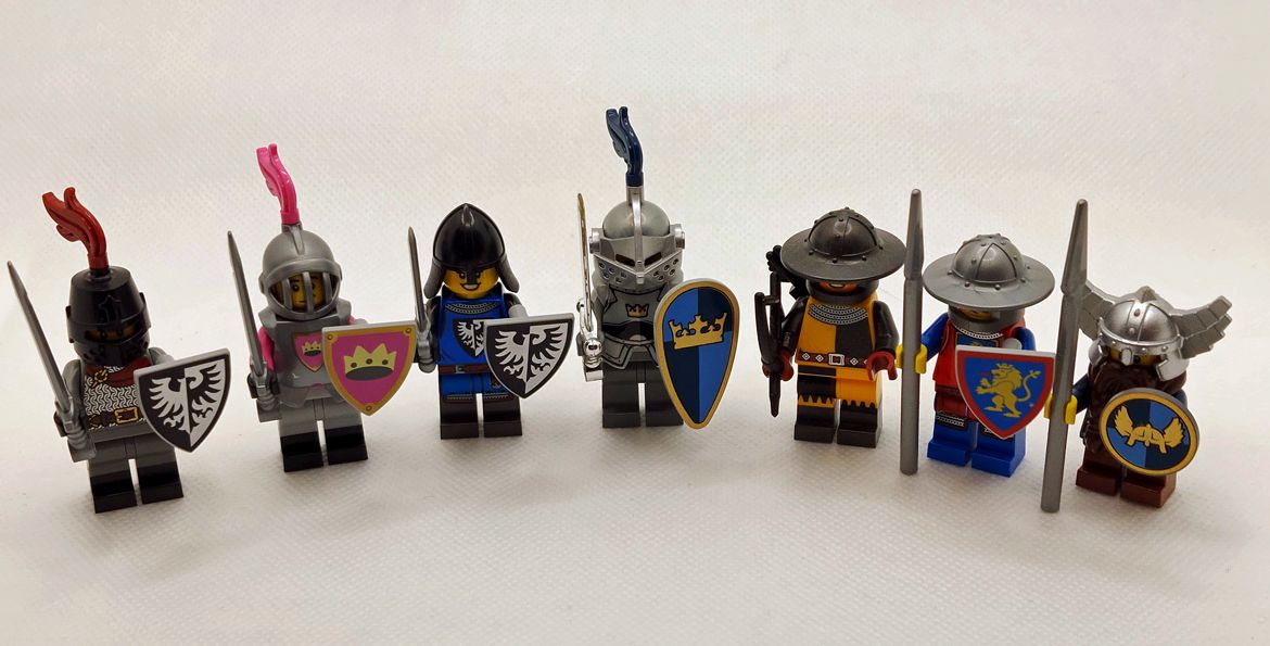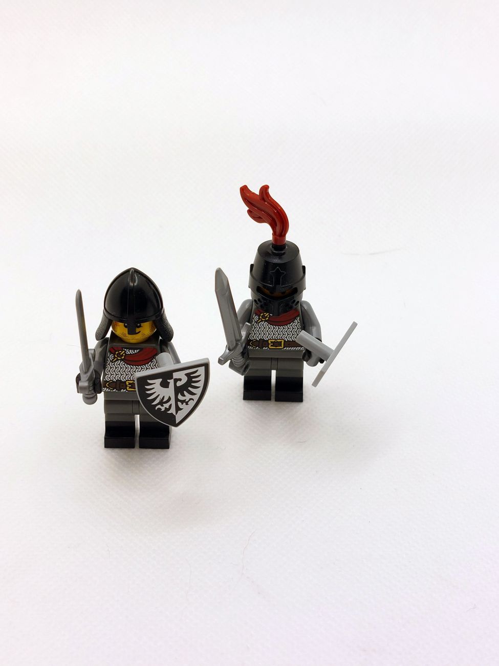Einen sehr großen Anteil unserer Figuren machten die beiden neuen Ritterheere aus, die Neuauflagen der Falken- und Löwenritter. Diese kauften wir in großen Mengen bei Pick a Brick, und rüsteten sie mit unterschiedlichen Helmen und Waffen aus. Auch die Red-Falcons nutzten wir, diese gab es nur für eine bestimmte Zeit in den Build a Minifigure-Türmen in den LEGO Stores. Unseren Rabenrittern gaben wir dann noch schwarze Helme, da diese wesentlich besser zu ihnen passen.